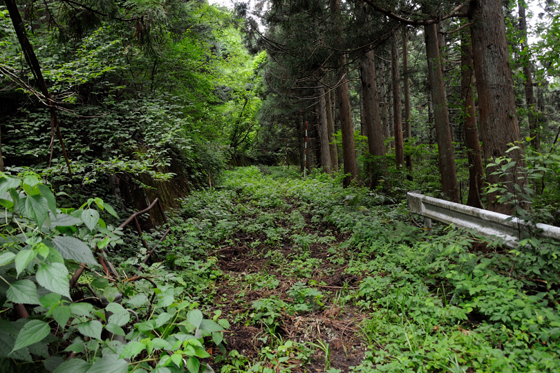 旧国鉄の専用道路との分岐。森を抜けるとNTTの無線中継所。珍しく未舗装。