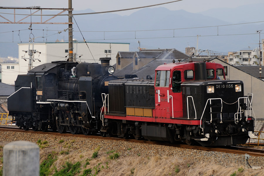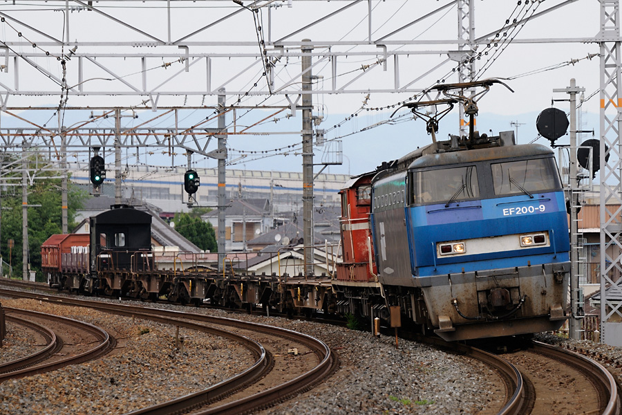 近くの展望台のようなところから撮影。右の貨物列車は現車確認も終わって戻っている最中に遠くを見たら接近していたので慌てて戻って撮影した写真。