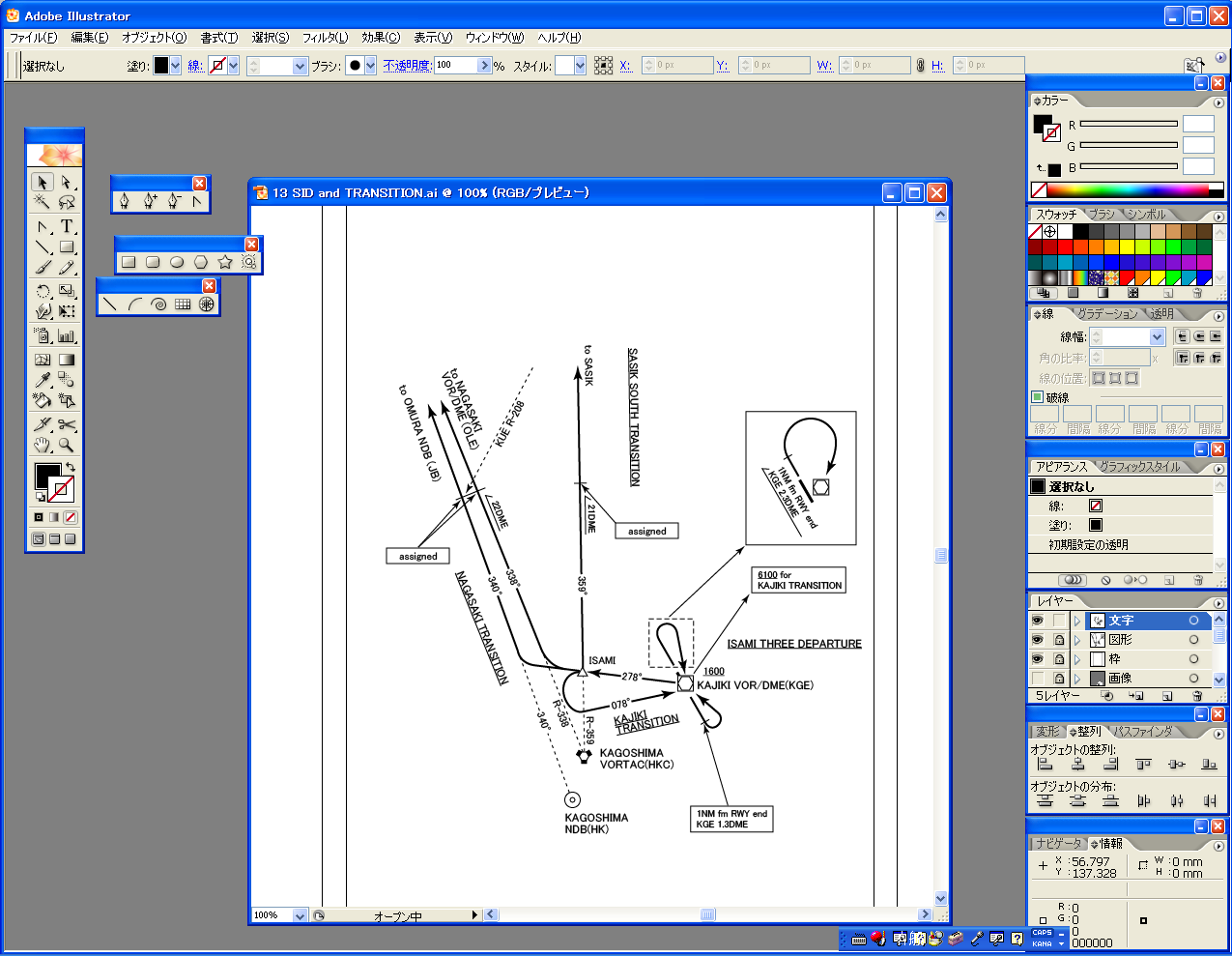 航空路の入力が一通り済んだので、.pointファイルの「¥」と「:」をカンマに置き換えてエクセルに取り込み関数を入力したらすんなりとうまくいった。