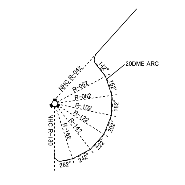 反時計回り:Roll out heading=VOR Radial-100°